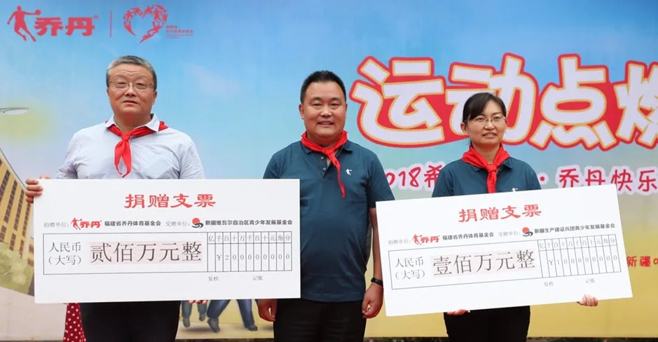 9月,向新疆自治区青基会、新疆兵团青基会共捐赠300万元,用于援建65所南疆地区学校的体育园地。