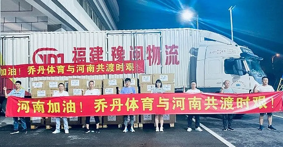 7月,为支援河南抗汛救灾工作,中乔体育通过河南青基会向新乡、鹤壁两地捐赠价值2000万元的服装和鞋子,发放给无家可归的受灾群众及一线工作人员与志愿者;捐赠1000万元现金用于资助河南受灾地区青少年教育灾后重建项目。